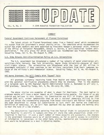 Renaissance Update, Vol. 6, No. 3, 1982-06/1982-08