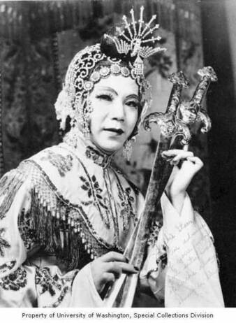Shuug Au Sing posing with a large feathered fan