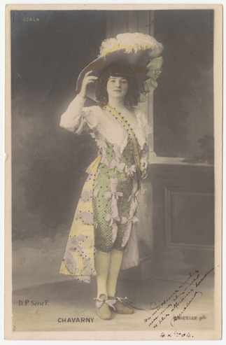 An actor in pantomime drag. Photographic postcard by Hana Studios, 190-.