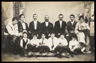 Actors in "Madame Lloyd's choir and orchestra". Process print, 190-.