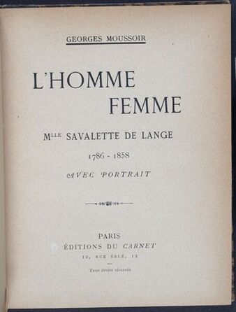 L' homme femme Mlle. Savalette de Lange, 1786-1858
