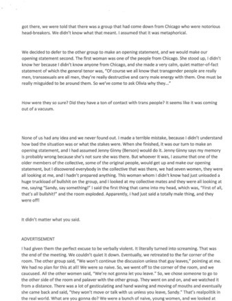 Collection: Felicia Elizondo/Felicia Flames Collection Institution: GLBT Historical Society Creator: Elizondo, Felicia, Drucker, Zachary, Stone, Sandy Date: Dec. 12, 2018 Topics: AIDS activists, Chicano/a/x LGBTQ+ people, Chicano/a/x transgender people, Latino/a/x LGBTQ+ people, Latino/a/x transgender people, Trans women, Trans-exclusionary radical feminists, Transphobia Description: This item contains potentially sensitive content related to transphobic violence. A collection of clippings from interviews with Felicia Flames and Sandy Stone. Pages are presented in the order... -