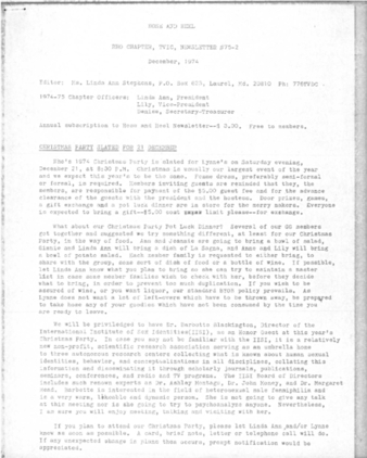 Hose and Heel: Rho chapter, TVIC newsletter, No. 75-2, 1974-12