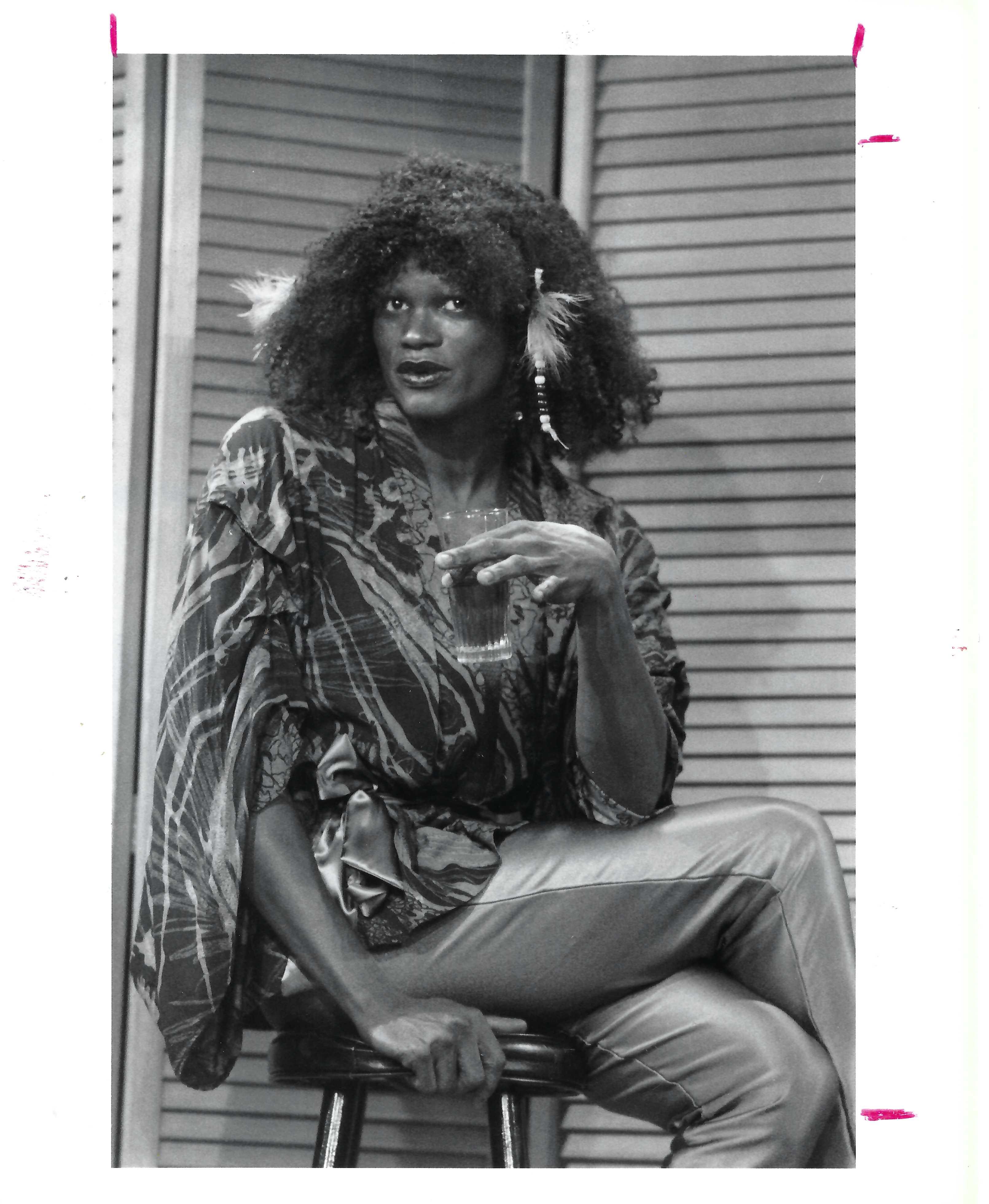 Photo of Michael, an actor playing transgender woman Miss Roj in a production titled The Colored Museum.