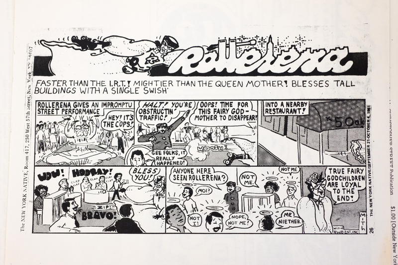 This is a comic published in The New York Native about the life of Rollerena Fairy Godmother.