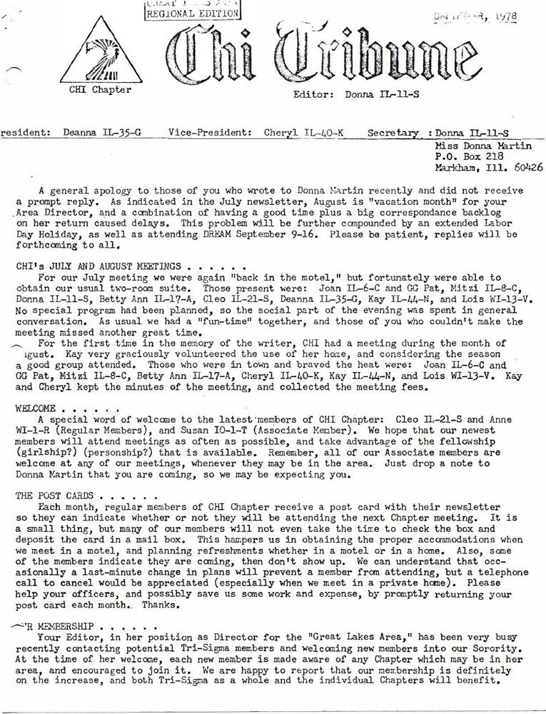 Chi Chapter Newsletters