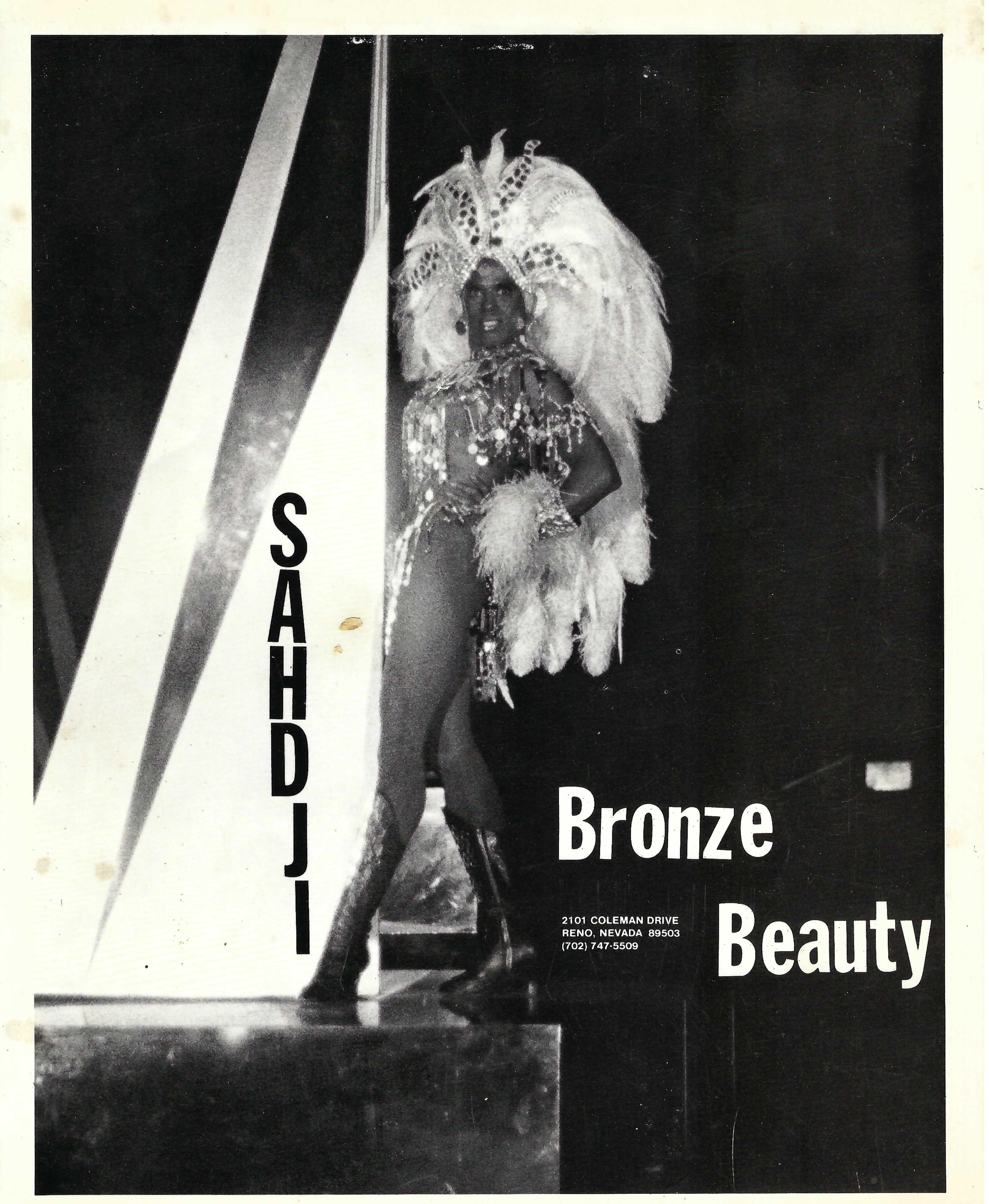 Photo advertisement for a performance by Sahdji, a drag queen and female impersonator.