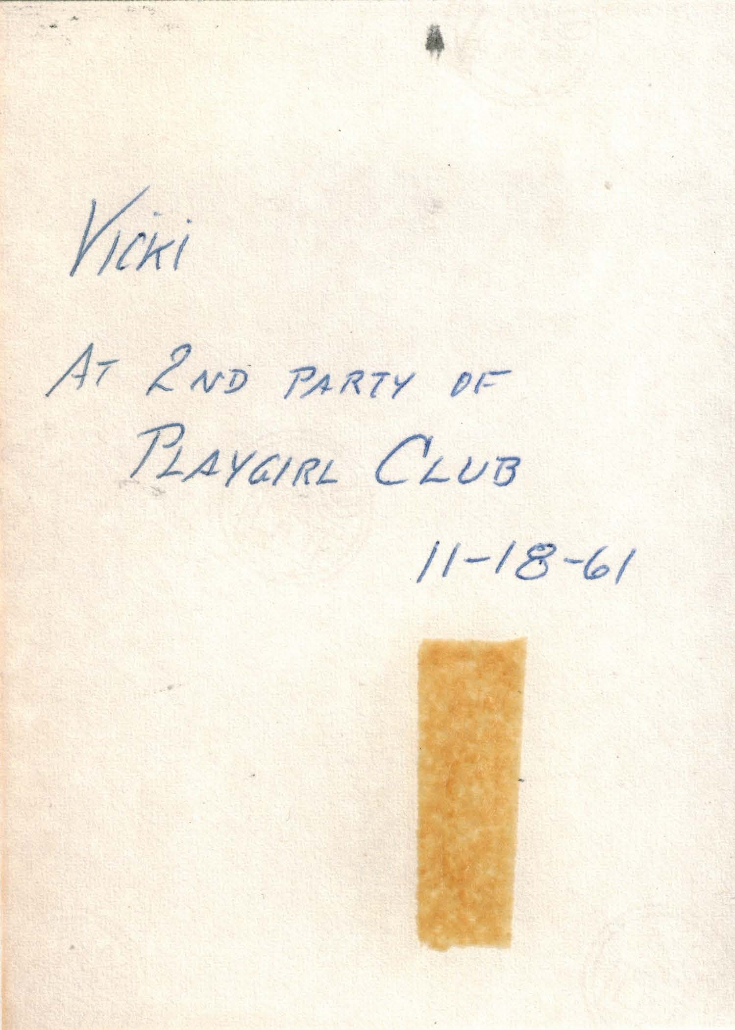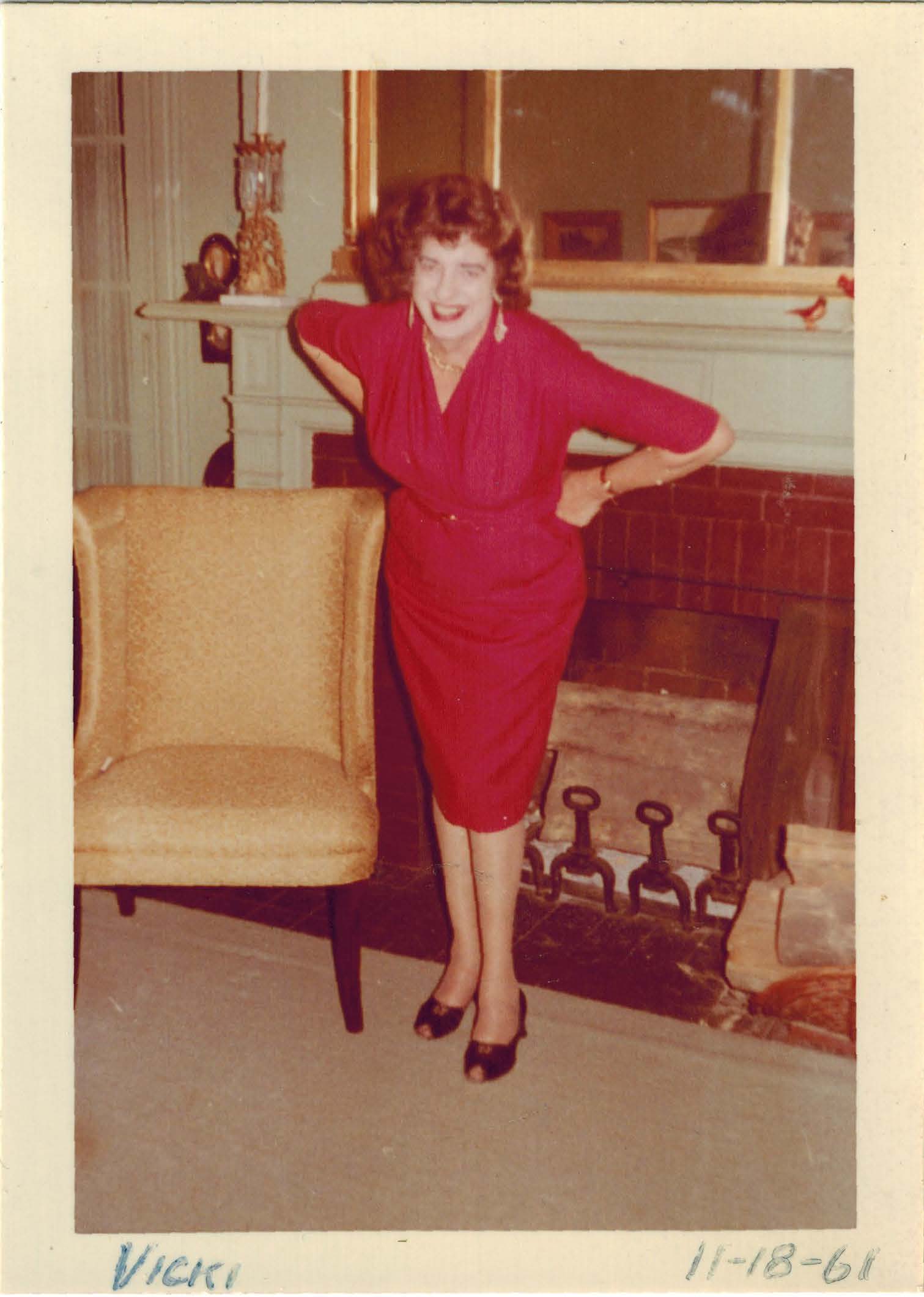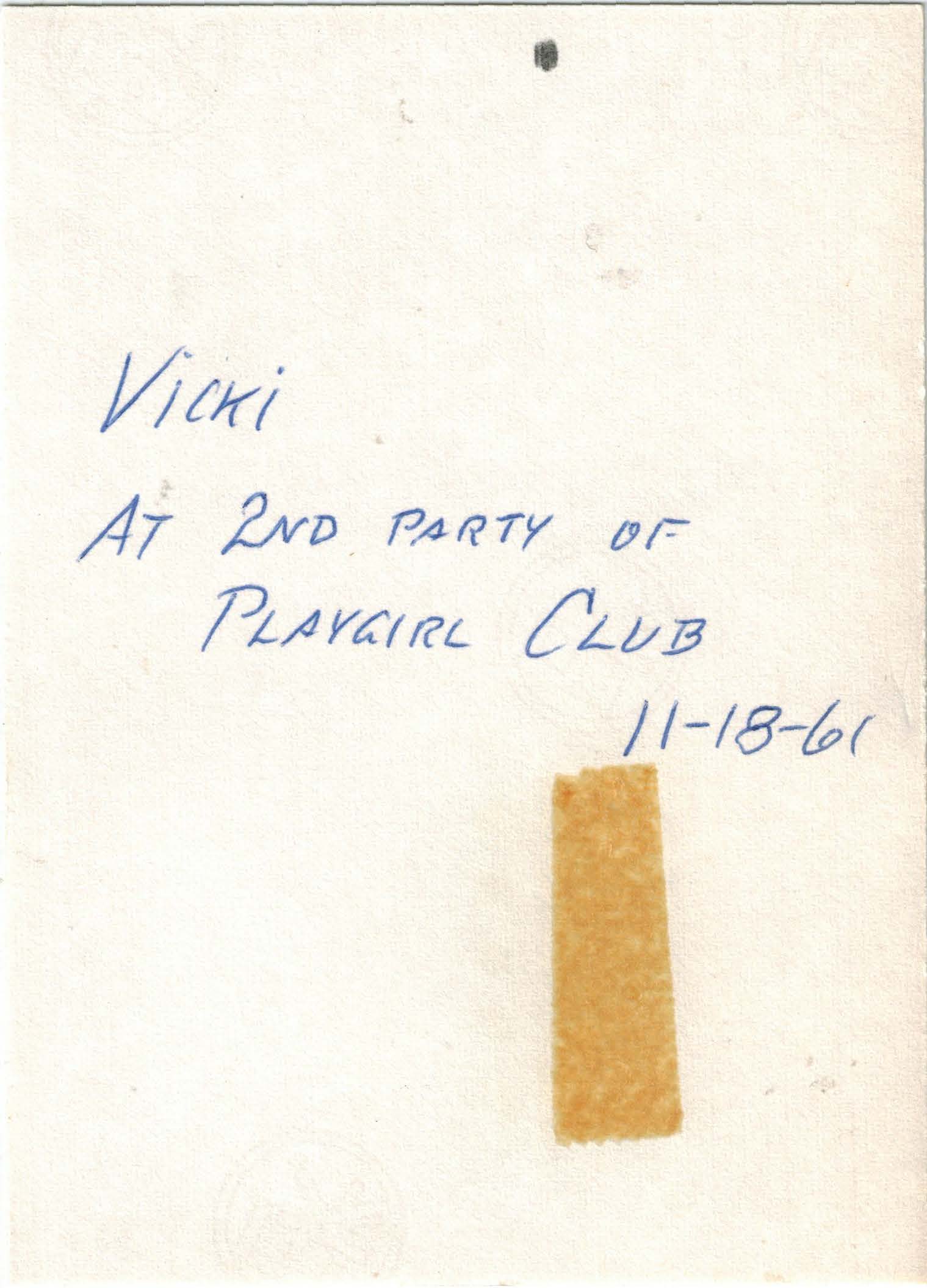 Photographs of Vicki in a red dress at the second part of the Playgirl Club.