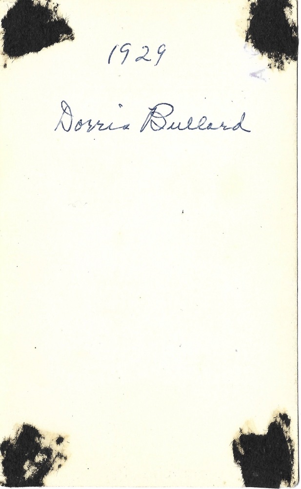 A photograph of Dorris Bullard taken while she was sitting on the ground. The image is captioned "Some Pose."