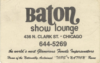A flyer promoting Chili Pepper at The Baton show lounge in Chicago. This item comes from the Felicia “Flames” Elizondo papers (#2021-06) at the GLBT Historical Society. Felicia Elizondo, who performed as Felicia Flames, was a Chicana trans woman and drag queen associated with San Francisco's Tenderloin neighborhood. She was a regular at Gene Compton's Cafeteria at the time of the Compton's Cafeteria Riot, a historic 1966 uprising by trans and queer people. Elizondo performed for many years at Aunt Charlie's Lounge alongside her close friend Vicki Marlane. This collection contains Elizondo's writings, photographs of her and her community, ephemera she collected about local drag and queer topics, and materials about Marlane and her legacy.